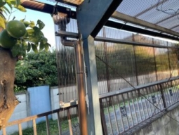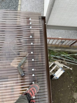 お世話になります。 Yellowline 富田です。 先月玉村町にてポリカ屋根の補修をさせていただきました。 車2台分の大きい車庫でしたが 雹害にあってしまい、全体的な補修となりました。 保険対象でしたので、保険がおりたタイミングで 作業致しました 6尺70枚というかなりの数でしたが、 2名体制で修理する事が出来ました。 一部樋持ちや躯体部分も補修し キレイにする事が出来ました。 雨樋はサービスで! とはいかない内容でしたが 材料費のみで雨樋が出来ました。 とても喜んで頂いてよかったです。 |